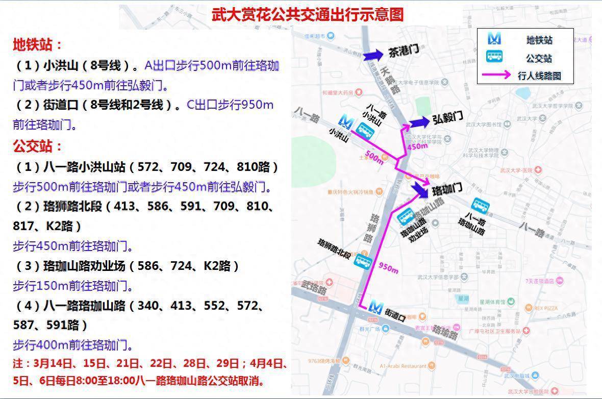 阳春三月,春暖花开,踏青赏花正当时。为方便广大市民朋友出游赏樱,武汉洪山交警发布武汉大学等辖区道路出行指南,请您查收!